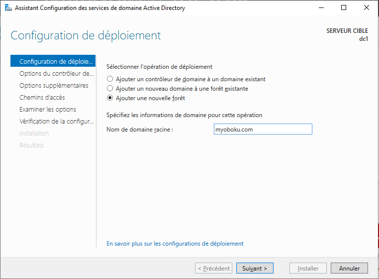 Ensuite nous allons donner un nom convivial à notre futur contrôleur de domaine. Pour mon cas je vais le nommer dc1 car plus tard je compte mettre en place un second contrôleur de domaine.